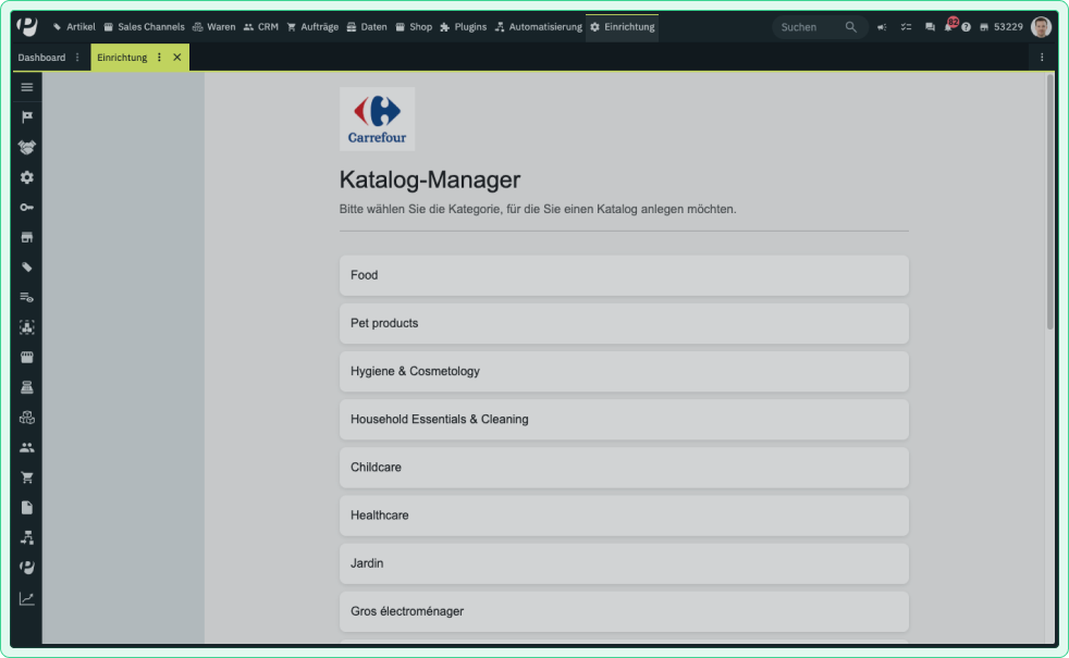 Standardized data transfer via PlentyONE catalogs